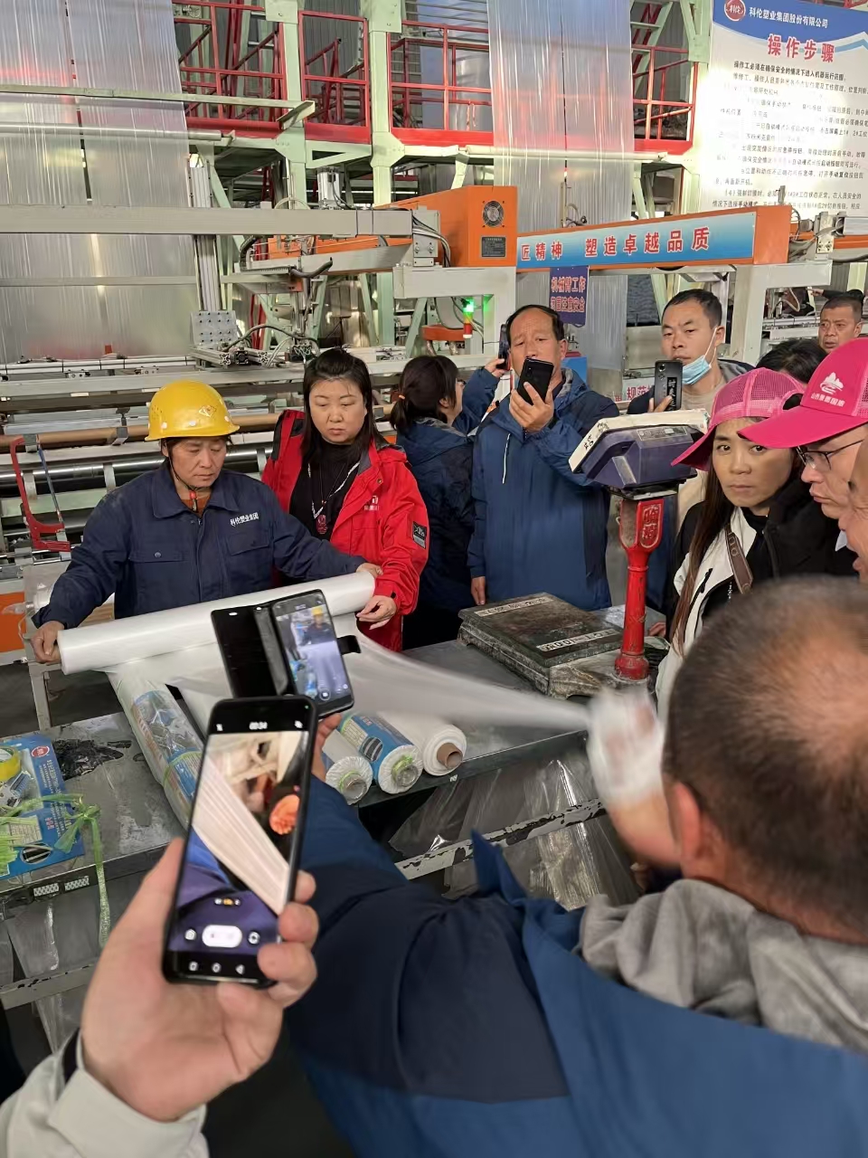 在集團領(lǐng)導和公司銷售、技術(shù)人員的帶領(lǐng)下,考察團參觀了功能棚膜車間、地膜車間、技術(shù)研發(fā)中心、展廳等處??苽愃軜I(yè)先進的集中棚膜供料設備、智能化地膜自動卷取系統(tǒng)、一流的檢驗檢測儀器受到廣大客商的高度關(guān)注和充分肯定。